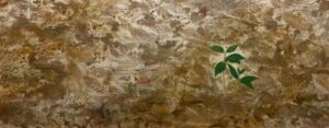 胡粉を使い葉っぱを半立体にし箔を載せて丁寧に描き上げていく。