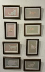 木版画は手に負担が多くかかるので長く作家生活を維持するために今回は手描きで猫を描きました。「これがまた楽しくて」だったそうです。