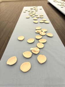 投稿日: 4月 8, 2026 投稿者: 高北章子花筏ー高木伸彦かけるやきものⅡ 今日あたり桜はほとんど葉桜になっていますが、会場には花筏を思うような展示がしてあります。 名古屋の銘菓「二人静」を載せてみました。 こんな優雅花見茶会やってみたいな。