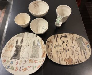 写真はお皿ばかりですが、カップもあります。いろんなアイテムに会場で合ってください。